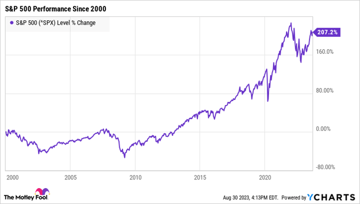 In the long term, though, the market is incredibly resilient. Over the past two decades alone, it has experienced multiple major recessions, countless corrections, and plenty of other ups and downs along the way. Yet the S&P 500 is still up by more than 207% since 2000.