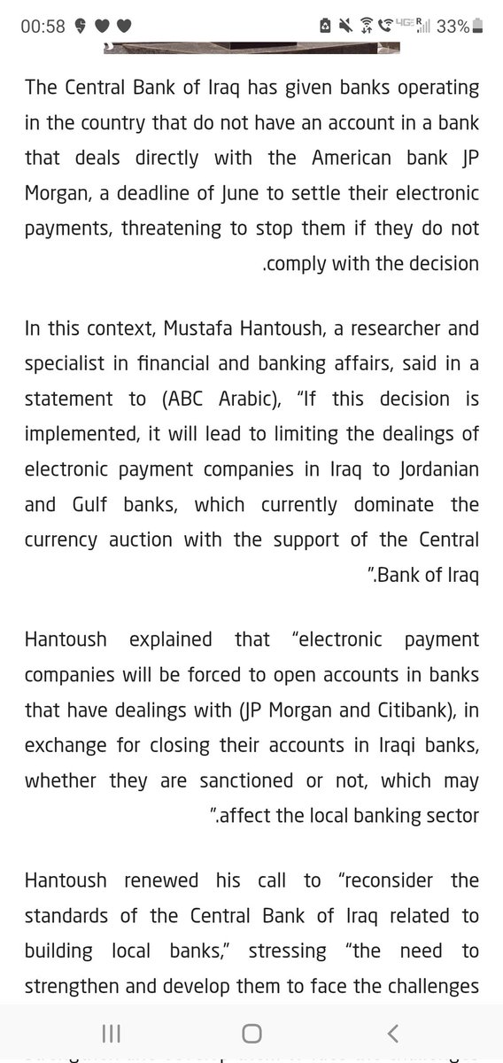 Will Iraq Abandon Its Local Banks? New Pressures from the Central Bank