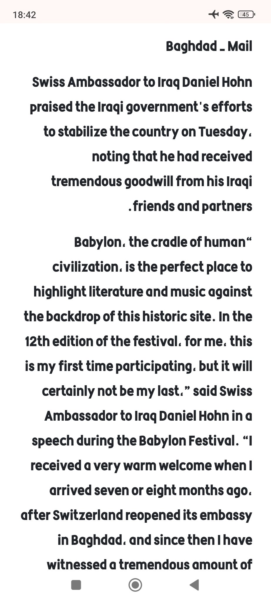 Swiss Ambassador: I found a tremendous amount of goodwill and stability in Iraq.